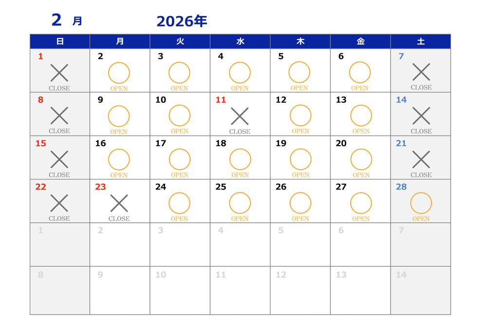 ○は通常オープン、×は休業日